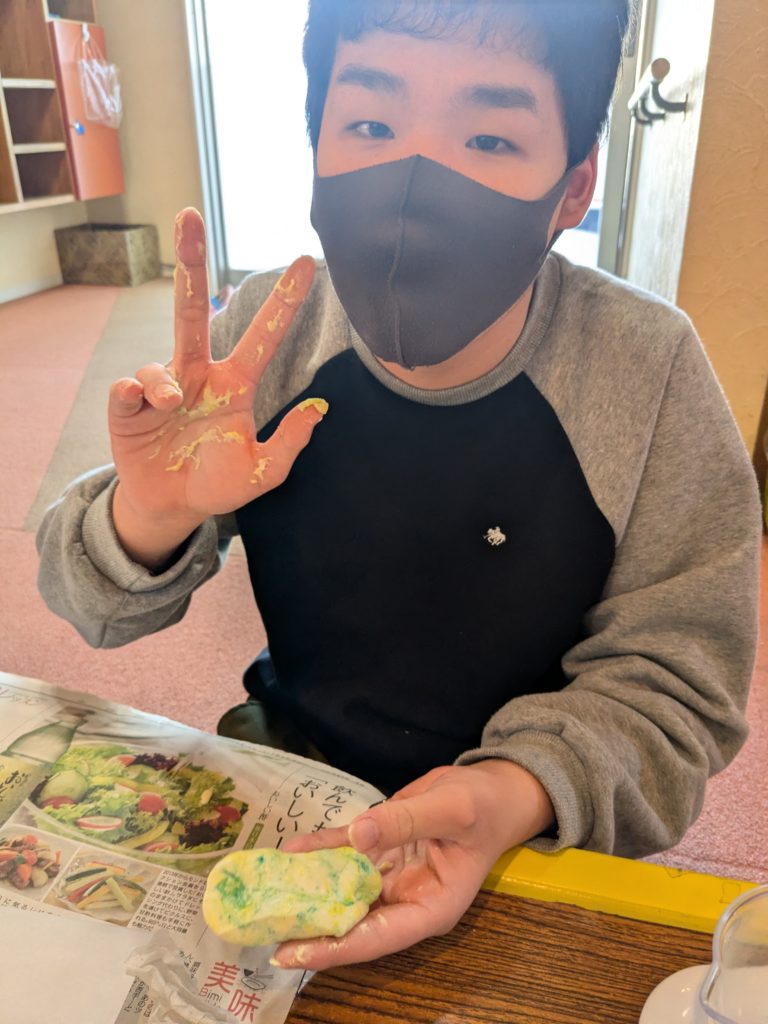 8日の活動の様子です🍪はやく食べたいなぁ~と協力して作っていました🤩あたたかくて美味しかったね🪓