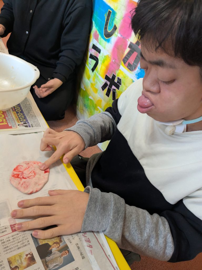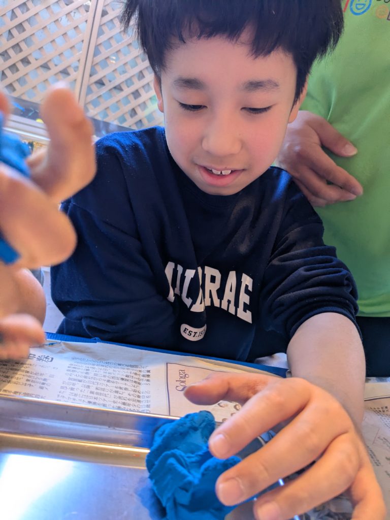 10日の午前の活動の様子です🧤不思議な感触で伸ばしたり混ぜたりずっと遊んでいましたよ🛸