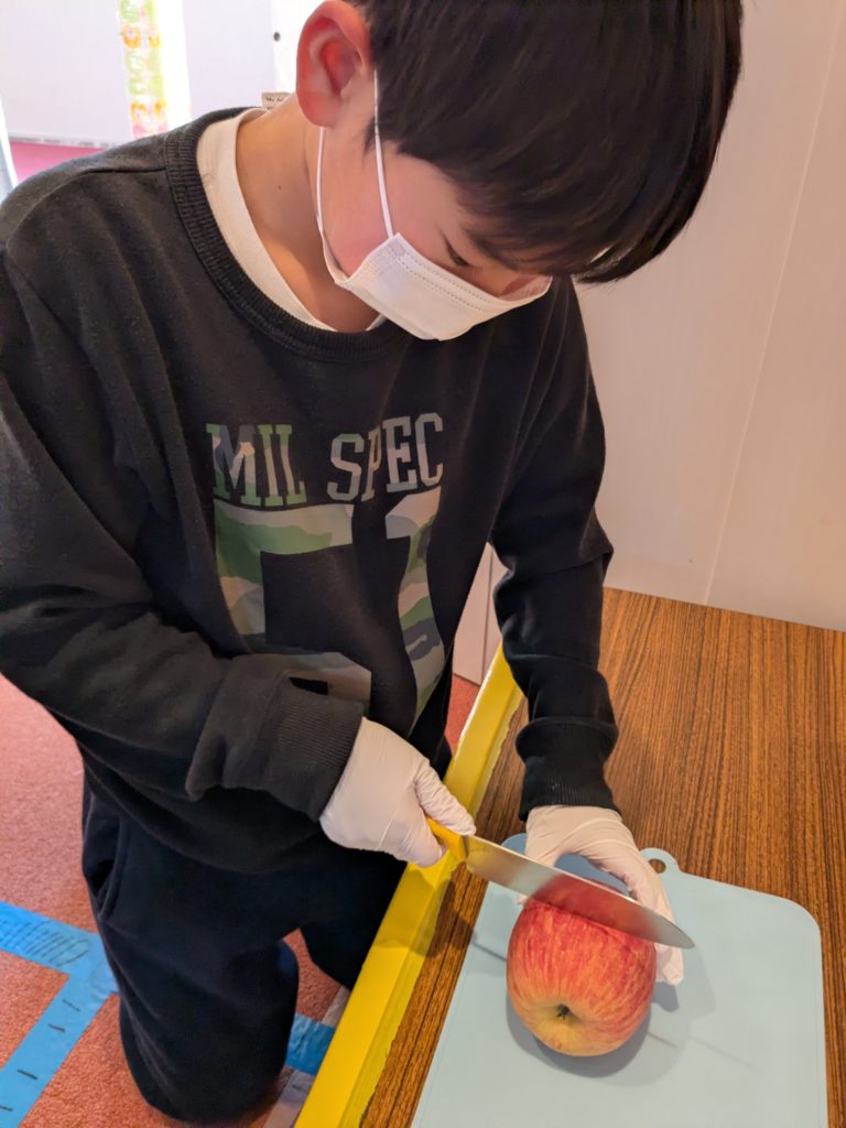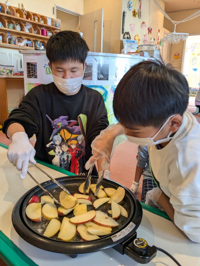 おやつ作りでは次は何❓と工程を確認しながら分担して作りました🍎あま~い匂いが部屋中にひろがっていました🍦