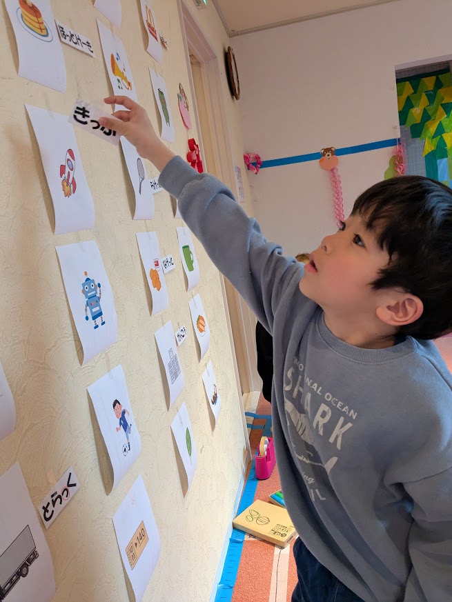 24日の活動の様子です🥞文字のなかにあるちいさな「っ」みつけられたかな❓もじと絵を合わせて、みんなで答え合わせしてみたよ🌞