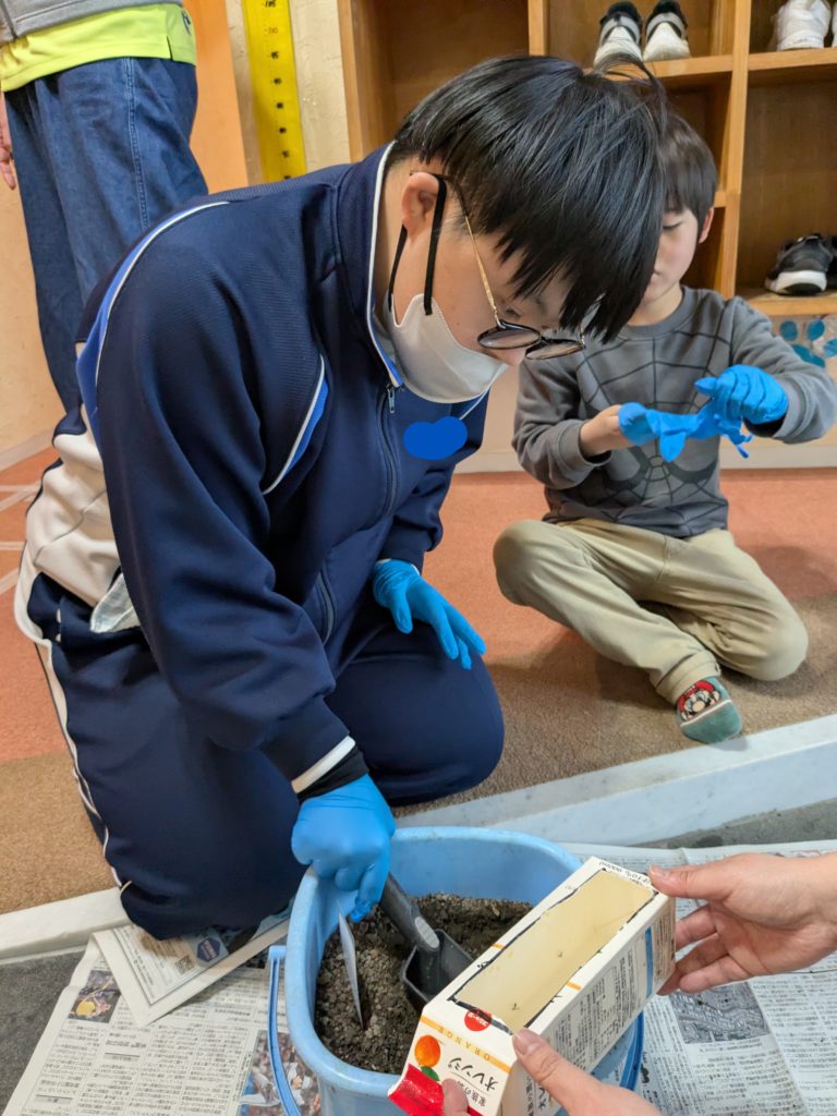 25日の活動の様子です🥒廃材を活用してプランターを作り野菜の種を植えました🤓どうなるかな…楽しみだねっ🧭