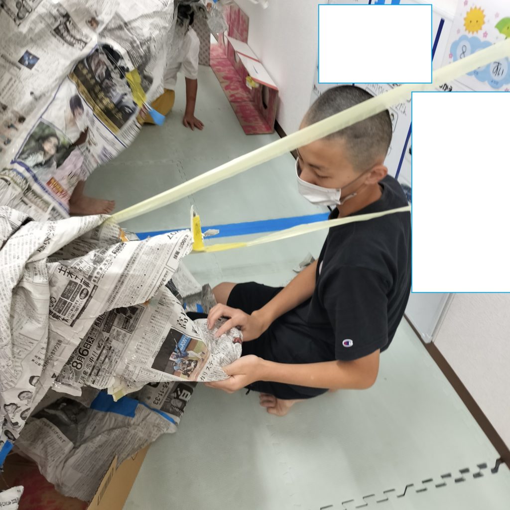 新聞紙のトンネルを外したり、ダンボールもまとめたり🧶