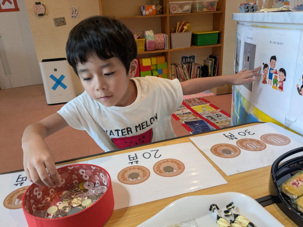 硬貨のマッチングをしたり、実際に今日のおやつを自分で選んで買いました💫