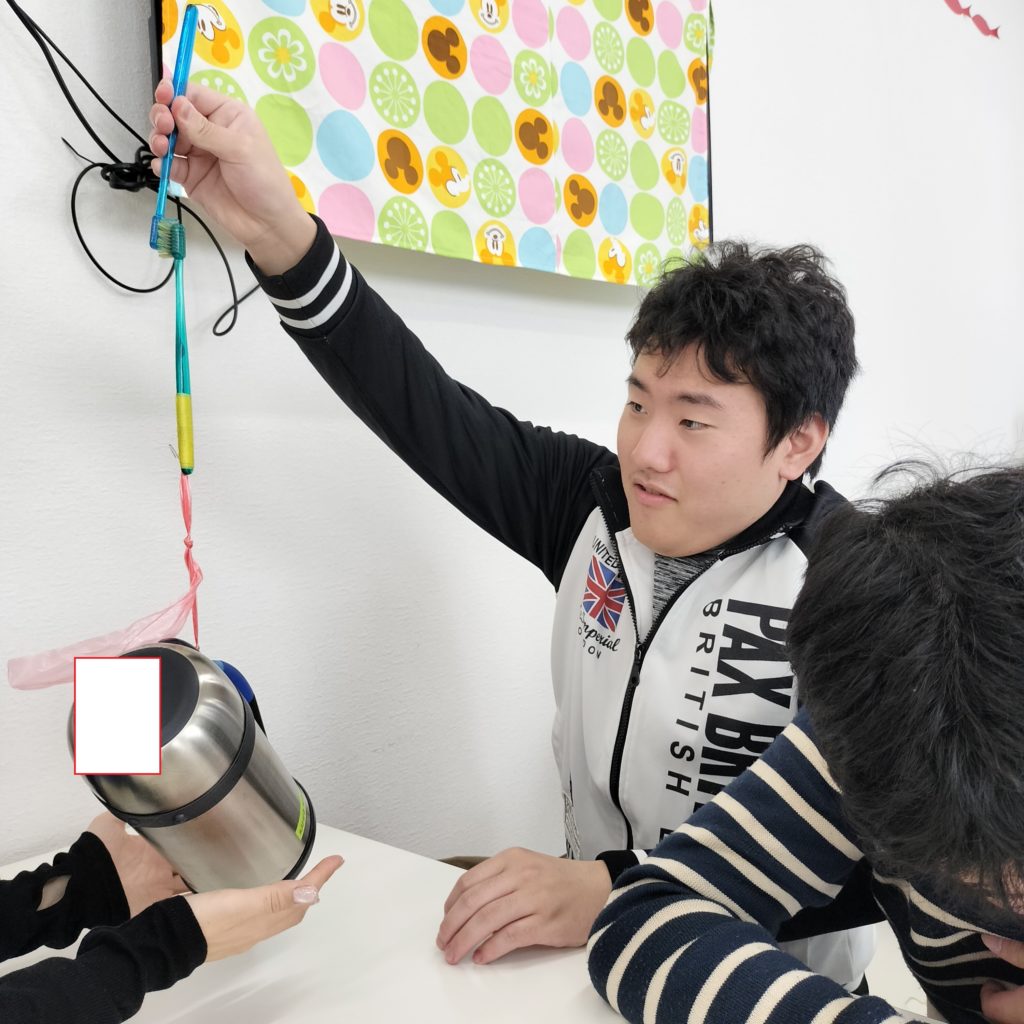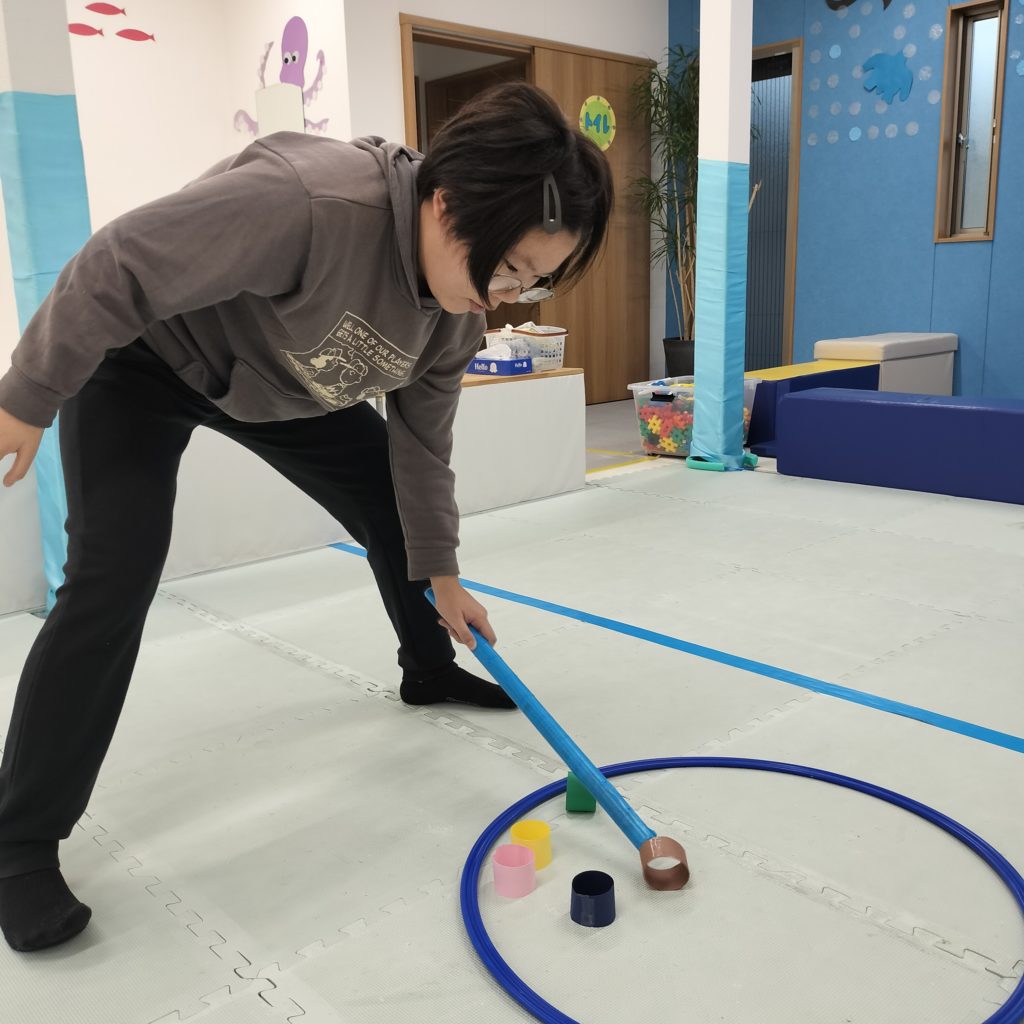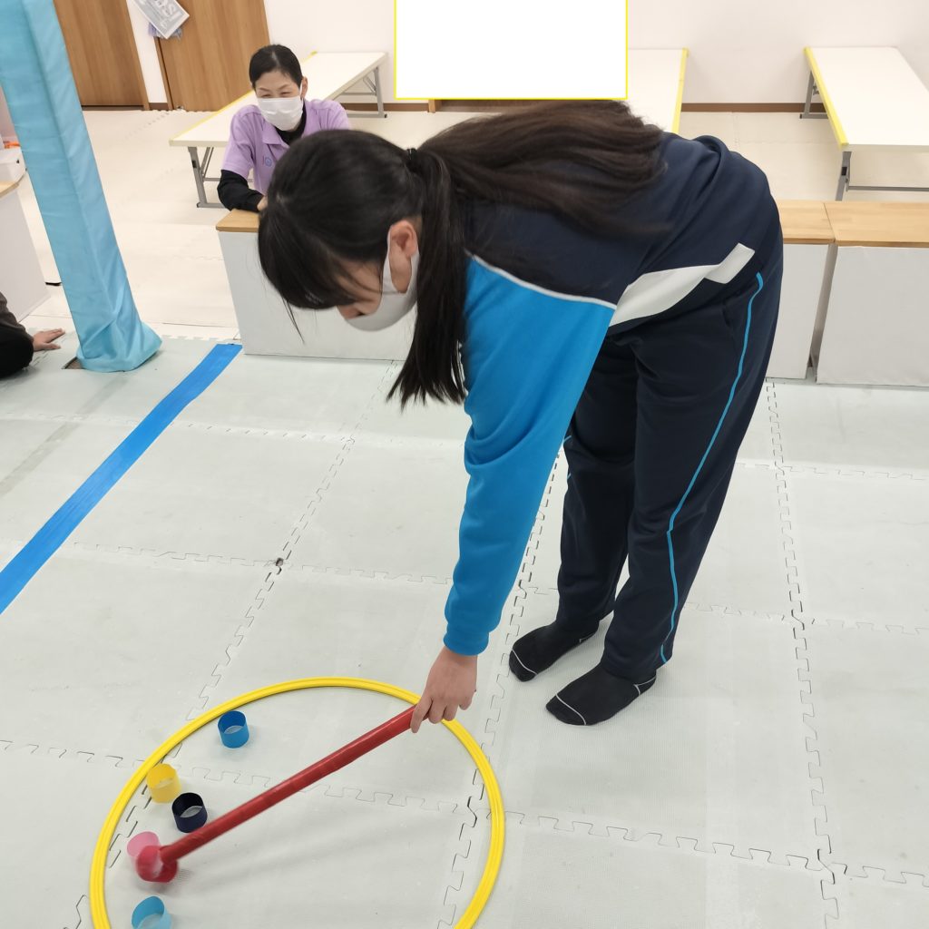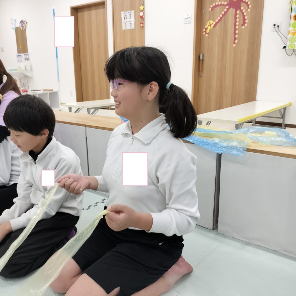 グループの子とひもを使って風船をゴールまで運べるかな⁇🎈