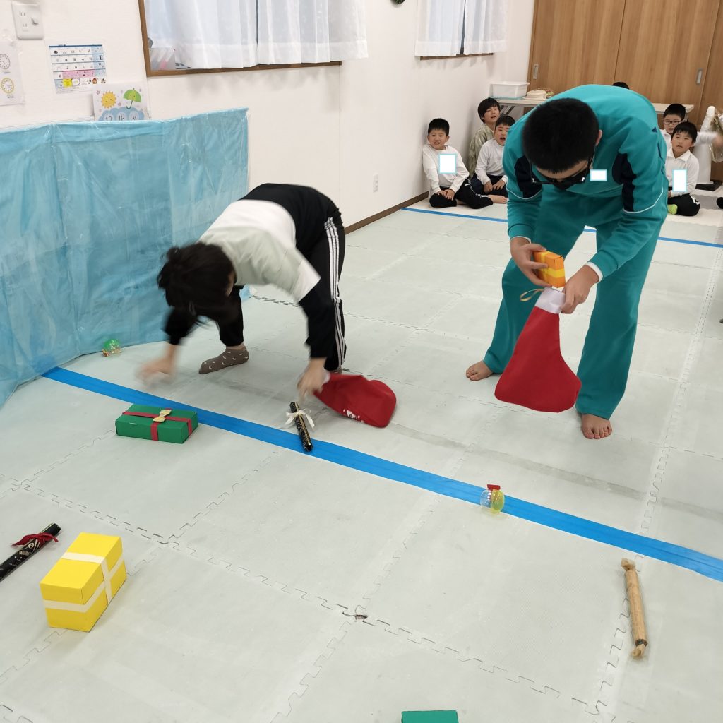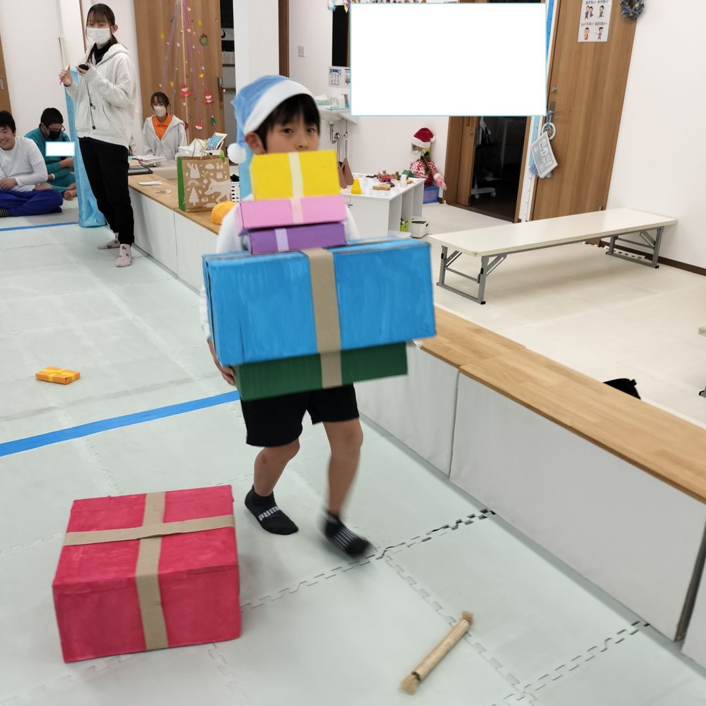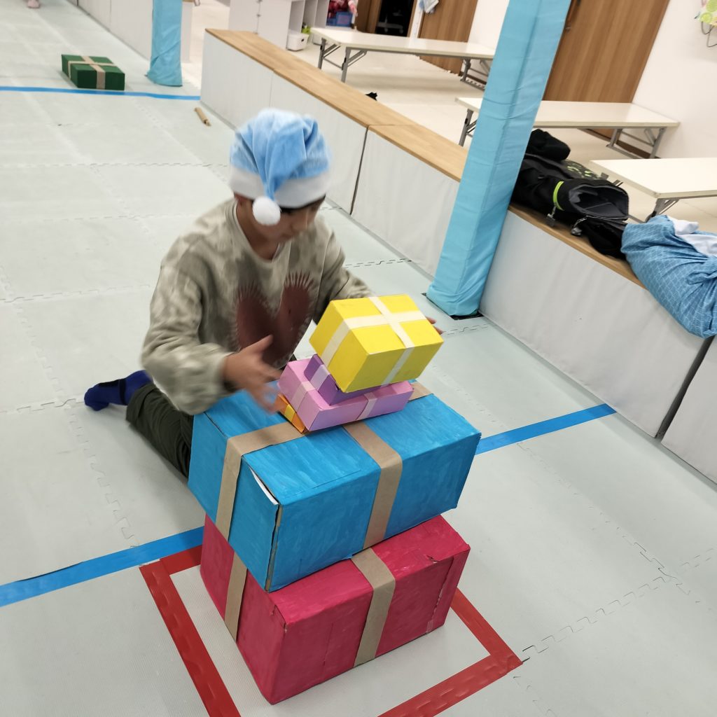プレゼントをたくさん入れるにはどうしたらいいかもよーく考えられました💮