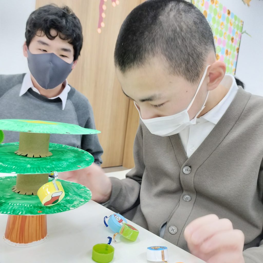 ぐらぐら揺れるツリーが倒れないように飾りをつけよう🎈