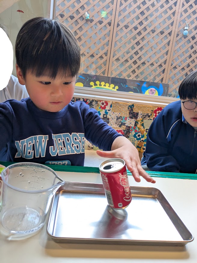 21日の活動の様子です🍓実験をしました🍺 まずは缶に水をいれて、、