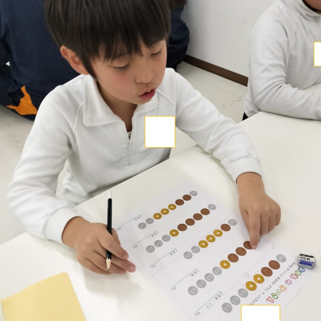 今日もプリントを解いてからおやつのお買いもの💴