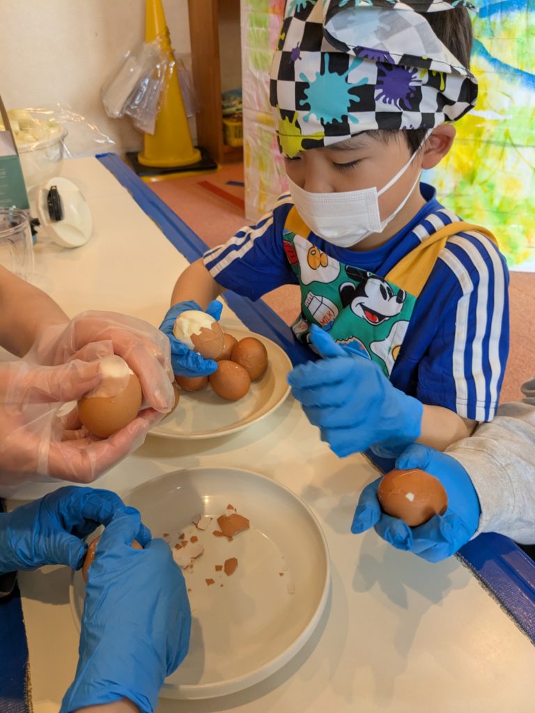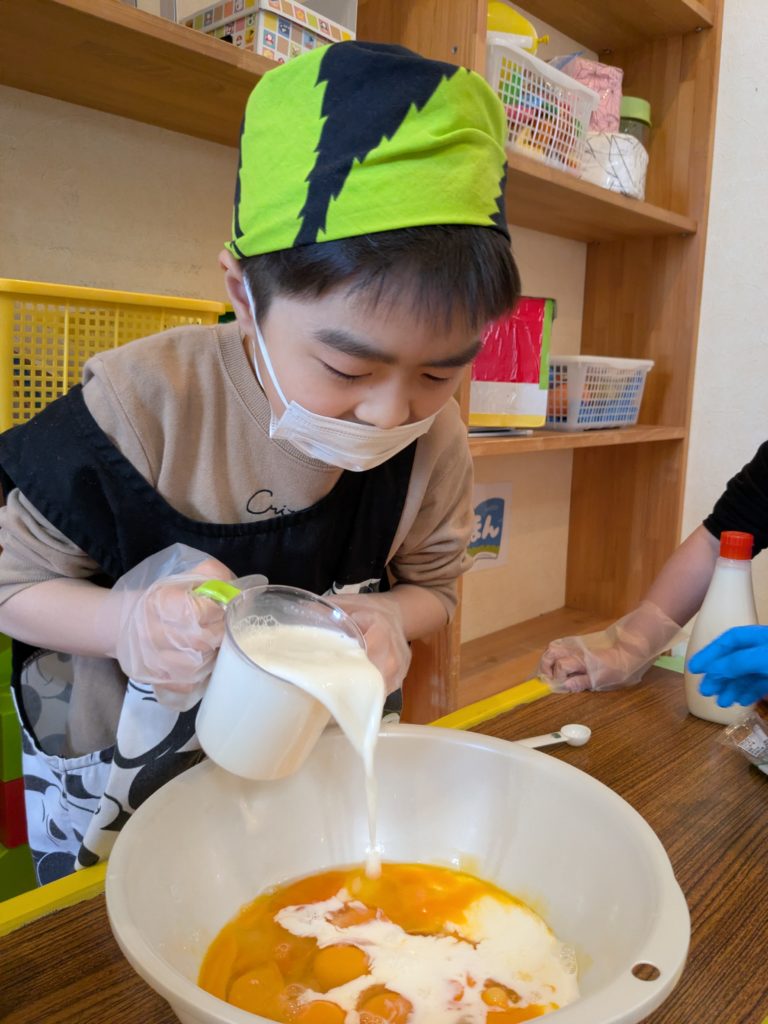 2日の活動の様子です🥚どんな料理❓説明を聞きながら丁寧に作ってくれました🩷焼きあがるまでちょっと待ってねっ・・・🌞