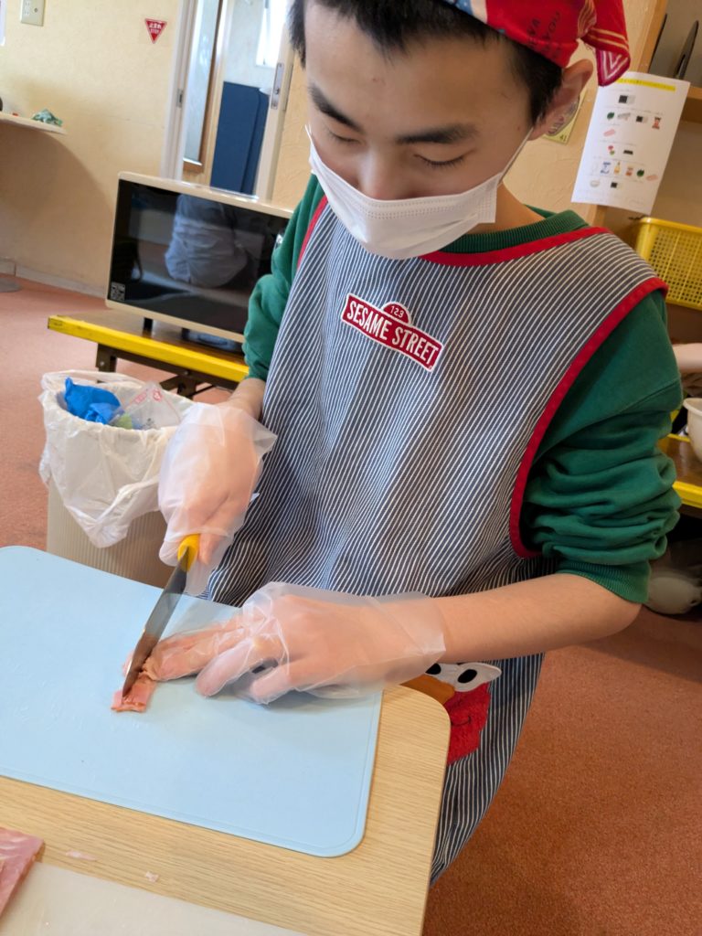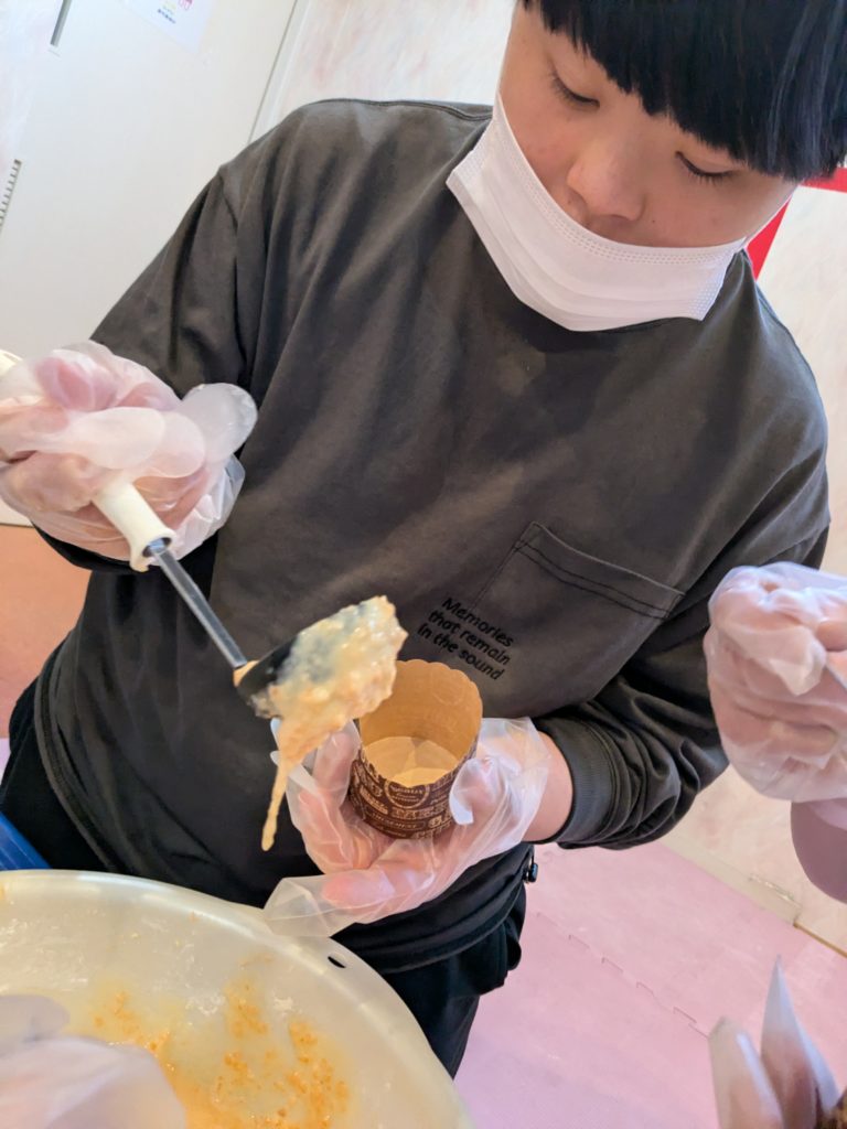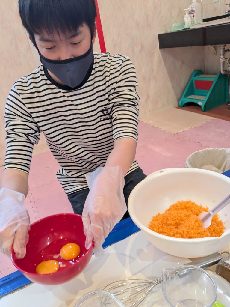 3日の活動の様子です🥕細かくして生地とミックス💫とってもいい匂い・・・早く食べたいねっ🦊